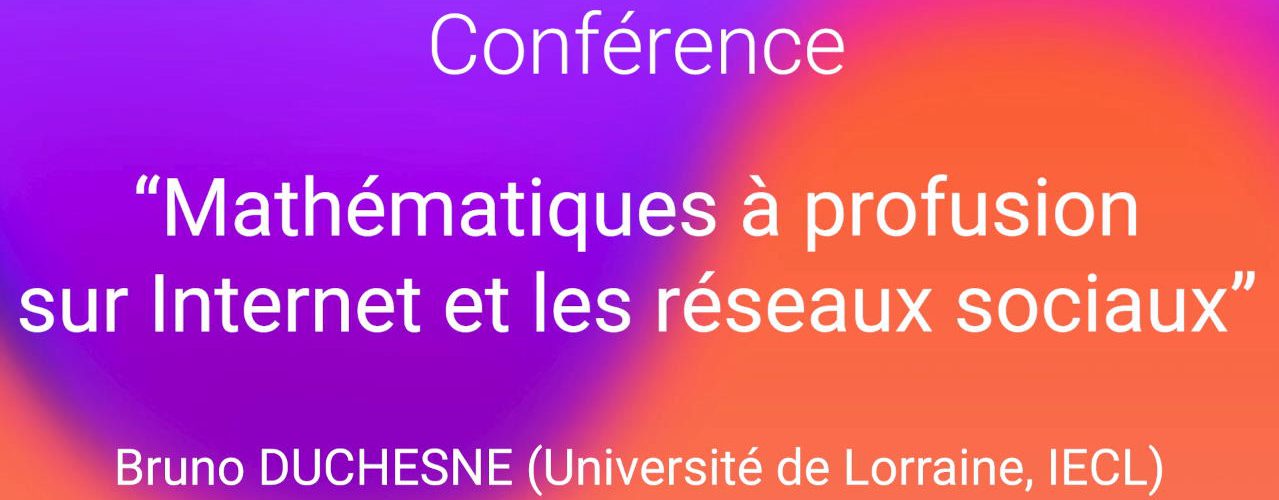 Conférence de Bruno Duchesne lors de la journée de formation (PAF) Institut Élie-Cartan de Lorraine (IECL) « année des mathématiques » le 15 janvier 2020, à l’initiative de l’INSMI (CNRS), de l’IECL et soutenue par l’IREM de Lorraine.